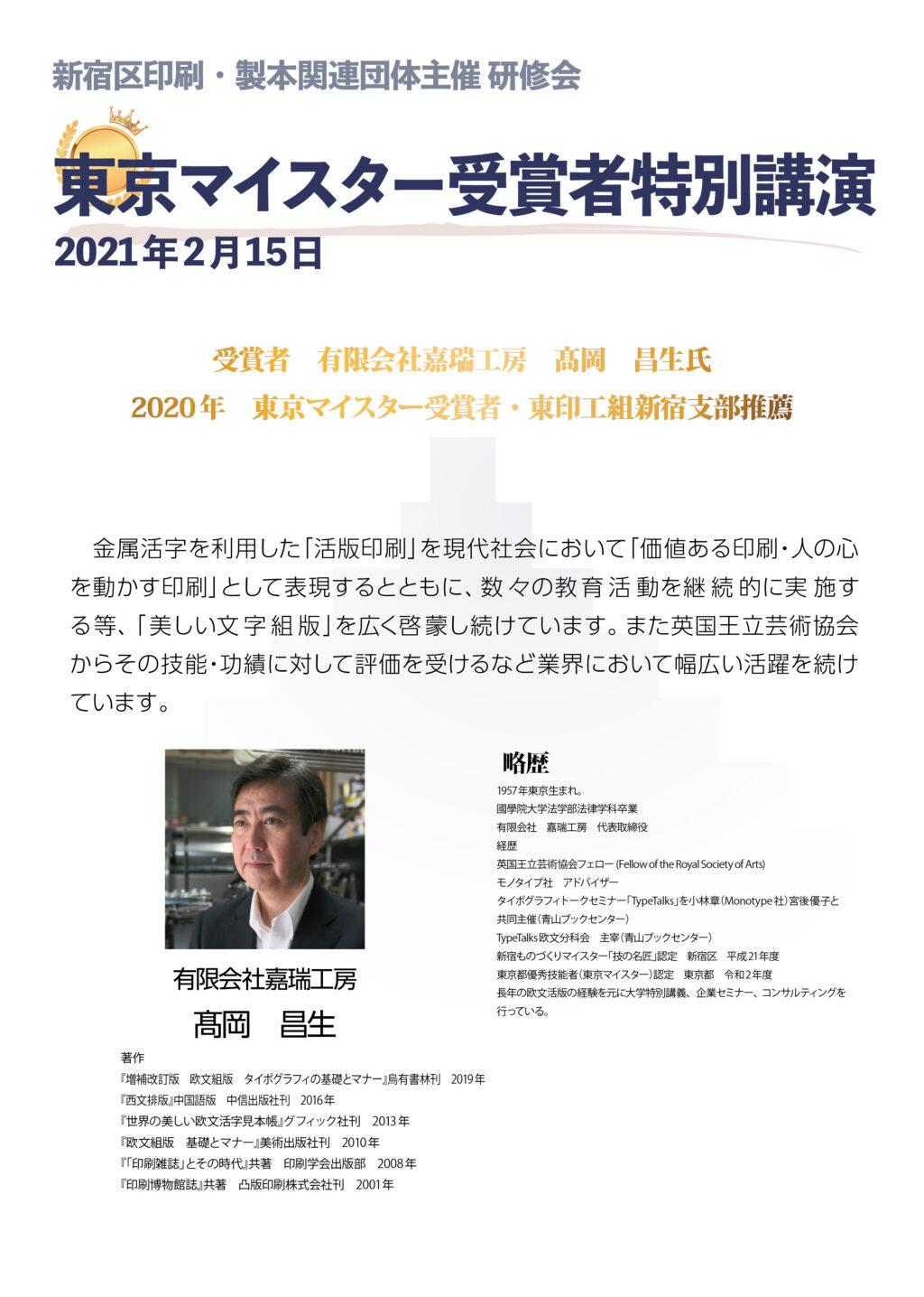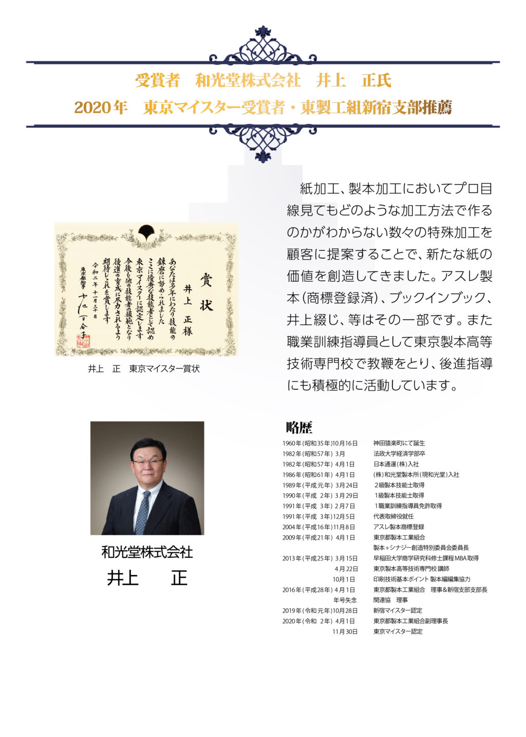 2020 年 東京マイスター受賞者・東印工組新宿支部推薦
